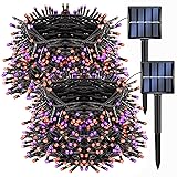 Dazzle Bright 2 Pack 200 LED 23 FT Warm White Christmas Solar String Outdoor Lights, Solar Powered with 8 Modes Waterproof Fairy Lights for Bedroom Patio Garden Tree Party Yard Decoration
