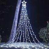 ★【Christmas Star Lights】This star string lights feature 320 LEDs, 1 top star, and 9 strand string lights. The large star topper is about 12.6in, each string light drops 11.5ft. Plug cable length:16.4ft. It will be a beautiful addition to your outdoor decorations and indoor curtain lights!