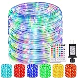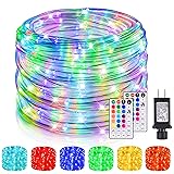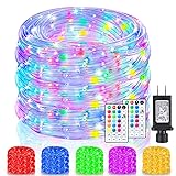 Smart Remote Control: The multi colored rope lights come with two remotes that can be easily operated within 5m/16.5ft. Turn on/off, timer (set 4H/6H/8H), color, speed adjustment, brightness adjustment and mode switch. Suitable for outdoor/indoor decorations. DIY unique style for camping trip, backyard fence, garden, living room, bedroom, deck, pergola, balcony, swimming pool, roof, trees, porch, deck, window, door, pathway, walkway, hallway, home, clubs, bar, landscape, etc
