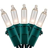 Multicolor Christmas Lights with Green Wire, 66 Feet 200 Count UL Certified String Lights, Pack of 2 Sets 33 Ft 100 Count Incandescent Mini Light Set (Multicolor - Green Wire) ♥ SPECIFICATIONS Light Color: Multicolor (Red, Orange, Green, Blue, Pink) Light Display: Steady Bulb Type: Incandescent Bulb Shape: Classic Bulb Material: Glass Removable Bulbs: Yes Average Hours: 3,000 Voltage: 120 V Wire Color: Green Wire Gauge: 22 AWG Male Plug: Fused/Stackable Female Plug: End-to-end Rating: UL Certified Grade: Premium Fire Resistance Rating: Class A 105℃ Ingress Protection Rating: IP44 Usage: Indoor / Outdoor Warranty: 3000 Hours Dimensions: - Total Length: 33 ft x 2 - Lead: 6 in - Spacing: 4 in - Tail: 4 in Power: - 40.8 Watts / Strand - 216 Watts End-to-end Maximum - 5 Strands Maximum Connection ♥ WHAT'S IN THE BOX: 2 x 100 Multicolor Incandescent String Lights 8 x Replacement Bulbs 2 x Replacement Fuses 1 x User Manual ♥ Warm Tips. 1. Two strands of 100 lights in one package. 2. Incandescent bulbs warm up under operation. 3. The glass shell of the bulb can be broken. 4. Male and female plugs must not be wet or immersed in water. 5. End-to-end connections with more than 5 strands running simultaneously, or input voltage above 120 volts will blow the fuse. 6. Fuse is located in male plug and 2 replacement fuses included in each strand. 7. Additional fuses may be purchased locally at auto parts and hardware stores.