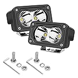 Specification: Power: 40W / Pair Lumens: 4,000LM Dimension: 3 * 1.8 * 1.8 Inch Operating Voltage: DC 12 ~ 30V Protection Rate: IP68 Waterproof Material: 6063 Aluminum profile, PC Lens Color Temperature: 6,000K-6,500K Working Temperature: -40 ~ 85 Degree Celsius Working Life: Delivering over 50,000 hours lifespan PACKAGE: 2 x 3 inch LED Pods Adjustable Mounting Brackets Screw Set (Without switch and wiring harness)