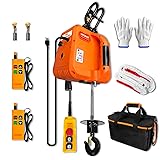 3-in-1 High-end Configuration: Equipped with wireless remote control (AAA Batteries Included), wired remote, and direct manual operation, offering multiple control methods for added flexibility; avoid running the hoist without load on its first use for optimal safety.