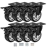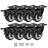 Easy to Install, Strong Load: We sell a set of casters, a set of 8 casters, containing 32 pointed screws with 32 iron washers, 32 flat screws with 32 nuts, the surface treatment of the support is the black electrophoresis process, the wheel is made of polyurethane materials, double bearings, strong load force, 4 casters can carry 1600lbs, no damage to the ground, quiet, suitable for a variety of indoor and outdoor ground.