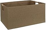 Measures: 16.5 Inch x 12.2 Inch x6.7 Inch. foldable storage bin are made of top-grade lightweight eco-friendly linen fabric, with a 2 mm pressboard base insert to maintain shape and strength. Large enough to organize lots of household and personal goods Durable Carrying Handles: strong wooden handles make the linen fabric storage basket easy for you to carry heavy loads, while the superior fabric quality ensures that the box has the strength to bear. These foldable boxes are both functional and decorative, strong and elegant. Multi- purpose of the shelf basket: Ideal storage containers for organizing magazines & books, kids toys, office supplies, baby products, diapers, clothes, socks, towels, toiletry storage, Making your home more tidy and orderly. Collapsible closet storage bins:You could simply fold it up when you don't use it or when you need it for travel use.There are stiff cardboards inserted in the bottom and all side walls for support allowing these storage bins to stand on their own even when empty. Quality commitment: If for any reason you are not satisfied with your purchase, please contact us. We provide 100% Satisfaction for risk-free shopping
