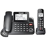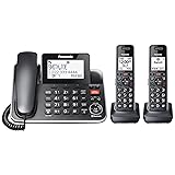 The Panasonic KX-TGF85x series corded telephone system lets you enjoy landline-level clarity to your calls, with one corded handset, and two cordless handsets. Grow your system to up to 6 cordless handsets (sold separately) to always keep a phone within reach. Advanced Call Blocking features help keep your life free from spam calls, with Automated Call Block to pre-block robocalls and Telemarketing Call Block to block announced callers; block 1000 numbers more with the 1-touch Call Block Button on the handset and base unit. 2-Way Recording records your conversations, to confirm what was said and avoid mistakes. Bilingual Taking Caller ID gives caller announcements in English or Spanish, so you can hear who is calling, even from across the room. The large phone base gives easy-to-use features at a glance, with a large tiltable 3.4-inch LCD display to a clear reading of who's calling, one-touch dial buttons for frequently dialed numbers, and a big red call block button to block nuisance calls. Phone book lets you keep 3,000 numbers stored for easy calling. Enjoy to 12 hours of talk time from a charged handset; standby time 7 days.