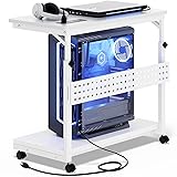 CPU Holder with Outlets - Built-in useful electrical power outlets and USB ports (3 AC outlets + 2 USB charging ports) for your devices to plug in. It is handy and easier to plug in your computer tower, phone, iPad, or PC monitor. So you can keep cables better controlled.