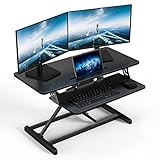 [One Handle to Lift Your Desk] With the smooth gas spring system, you can easily raise the standing desk converter up to 19 7/10''. You can achieve height locking with a simple touch of the lift handle, and the desk riser for standing or sitting can hover at any height in the 4 9/10''-19 7/10'' range. Find the optimal monitor height by lifting the stand up desk converter, which is slightly below your eyes from the top of the monitor.