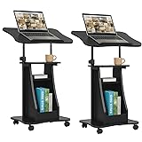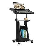 Description Say goodbye to strained necks and hello to optimal visibility with the podium stand. Its tilting desktop can be easily adjusted from 0° to 180°, ensuring exceptional visibility. Experience the ultimate flexibility with a customizable height range of 27” to 47.5”, allowing for seamless transitions between sitting and standing positions. Our laptop cart features an anti-falling stopper, preventing items from falling off. With a spacious desktop, open shelf, and 2 compartments, you will have ample storage options for all your presentation materials. Built with a robust structure, this podium desk ensures stability and reliability in classrooms, meeting rooms, or lecture halls. Go from room to room effortlessly with 4 universal wheels, 2 of which can be locked, granting you complete control over your presentations. Feature Clever storage solution with a wide tabletop, an open shelf and 2 compartments Ergonomic sit-to-stand design to cultivate better working habits Adjustment knob makes it effortless to set the height of desktop Adjustable tabletop provides healthy viewing angles for office workers Equipped with an anti-falling stopper to keep items stay in place Easy to adjust the tabletop angle by using the fixation knobs Features 4 universal wheels that are stable, low-noise and wear-proof 2 of them are lockable wheels to ensure convenient stopping Specification Color: White/Black Material: Engineered Wood, Metal Overall Dimension: 21.5” x 15.5” x 27”-47.5” (L x W x H) Size of Open Shelf: 14” x 12” (L x W) Size of Small Compartment: 8.5” x 8” x 6.5” (L x W x H) Size of Large Compartment: 13.5” x 8” x 12.5” (L x W x H) Length of Stopper: 13.5” Height off the Ground: 2.5” Height of Large Compartment’s Front Panel: 3” Tilting Tabletop Angle: 0°-180° Net Weight of Each Podium: 26.5 lbs Package Includes: 1 x Mobile Podium 1 x User Guide