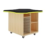 Description The Intermix Workstation fosters collaboration and encourages productivity! Created of solid oak veneers and finished with a chemical resistant, earth-friendly UV finish. These mobile units come with 4" locking casters for ease of use. All units have a square 48" high-pressure laminate top, available in a variety of color options. The Open Tote model have two boxes on each side for storage of larger items, and a long open compartment measuring 4-1/2"H. that can be used to store rods, tubes, etc. It also includes four small and one large Certwood totes. Small totes: (12 1/4"W x 16 3/4"D x 3"H), Larger Totes: (12 1/4"W x 16 3/4"L x 6"H). 30" high.