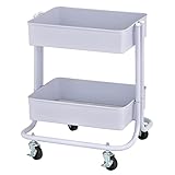 Mobile Storage: The slim storage cart features two shelves and can turn 360° with four rolling casters for quick transportation; two wheels lock to keep the unit in place