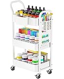 Extra Storage Accessories: The rolling storage cart is designed with a DIY pegboard to hang four hooks and a caddy for your preference. Also included is an additional storage bin that clips onto the side of the 3-tier rolling cart basket to hold brushes, pens, and other items for easy access.
