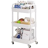 • 【Multifunctional Storage】Rolling utility carts can add extra storage space, 3-tier, classifies it carefully, and are widely used in multiple locations.In the kitchen, store food, seasonings, spice bottles, crisper boxes, paper bags, gadgets.In the living room, store snacks, teacups, books, ornaments.In the bathroom, store toiletries, paper towels, aromatherapy.Besides, it can also be placed in bedrooms, laundry rooms, baby rooms, offices, classrooms and balconies.