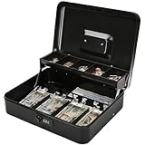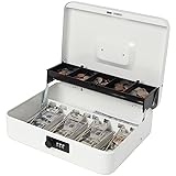 Dimension: 11.8"L x 9.5"W x 3.5"H Inches. Large cash box provides enough space to storage cash, coins, valuable jewelry, watch and so on