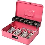 Jssmst Large Cash Box has five separate Compartment Cantilever Tray, which helps you to classify the coins of different value. And four sturdy bill tray, which helps you to separate things like currency, bill, receipts, checks and so on. Inside the bill tray, there're four metal clips with spring hinges to hold your money and bills tightly. Large size provides enough space for you to storage valuable items. Here is a warm reminder about metal clips, when you put the bills in and out, please hold the clips by your hand carefully, as the spring hinges are very sturdy. This cash box is heavy duty, which is made from a strong metal material. It is unbreakable without the key. You can carry the box by the handle with the key around the lock, jiggle the box, it will not open. Also, drop the box on the ground when it's locked, it will not burst open. Most Important: each box has it's two keys only, if you lost the keys, please take the box to a locksmith to open it.