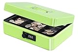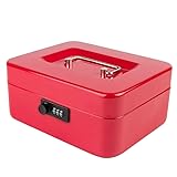 KYODOLED Large Cash Box with Combination Lock Safe Metal Money Box with Money Tray for Security Lock Box 9.84"x 7.87"x 3.54" Black Large Product description Specifications: Product Dimension: 9.84"x 7.87"x 3.54" (250*200*90mm) Color: Black Material: Cold-roll Steel Sheets, Stainless Steel (handle), Plastic (money tray) Use Instruction:1.Adjust the dials at"0-0-0"position and twist the button to"unlock";Note:no matter what code is on the lock,the default code is 000.2.Use fingers to move the lock slot from A to side, then up to B. (Don't move it from A to B directly, it will be stuck.); 3.Set your 3-digit code by rolling the dials,e.g. "321". make sure all numbers in the center of every dial; 4.Move the lock slot back from B to A to finish the code setting.Your password is "321'';Reset password again: use the password "321" that first reset as the initial password, then repeat the 4 steps. Package Includes: 1 * Cash Box 1 * Packaging Box