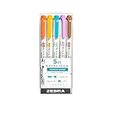 Zebra Pen Mildliner Double Ended Highlighter pens help you express your unique creativity with the convenience of two sized tips in each pen. Each pen’s unique mild color provides soft hue on the page, allowing you to layer with the water resistant ink with ease. Beautiful pastel colors don't bleed through so you needn't worry about the next page in your sketchbook. This 5-count set of dual tip aesthetic markers includes refresh tones: mild fuchsia, mild marigold, mild citrus green, mild summer green, mild lavender. AP certified non-toxic. Keep a set of Mildliner Double Ended Highlighters in your desk drawer, art bin or backpack for creativity at your fingertips. Create personalized greeting cards, sketch out a new idea or add dashes of precision color to any project. Add some beauty to your bullet journal, Bible study or planner. Bring a touch of color to handmade cards, letters and art presentations. Gift your favorite budding artist with a complete set. Excellent for marking up important passages in texts. Complete your creative kit with additional Zebra Pen artists’ instruments like Sarasa Fineliners, Zensations Technical and Calligraphy pens.