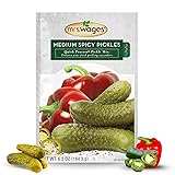 For those who want the perfect pickle that has the perfect balance of sweet and tang flavors! Perfect for burgers, fried pickles, alongside your favorite BBQ dish, or eat them all by themselves for the perfect snack! Each pouch makes 7 quarts of crisp, crunchy pickles. Before beginning any canning project, be sure to familiarize yourself with the process, the equipment you need and the ingredients. A boiling water bath method is used for the quick process recipes. The pickles are ready to eat 24 hours after preparation.