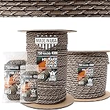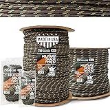 UNMATCHED STRENGTH: Experience durability like never before with our heavy-duty, military Type-IV 750 paracord rope which is made in USA. This outdoor rope is woven from lightweight nylon, boasting 11 braided inner strands, providing an impressive 750lb minimum breaking strength.