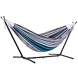 • Designed for two, share the double cotton hammock with a friend. The breathable fabric makes relaxation effortless.