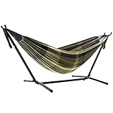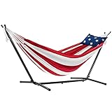 Vivere with Space Saving Steel Stand 9ft Double Sunbrella Hammock (450 lb Capacity-Premium Carry Bag Included), Crimson