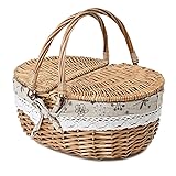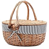 --Sturdy Picnic Basket - Made of complete nature wicker, Lid connected basket with durable rope --Go on a Romantic Picnic - Take the classic willow basket with your love, to the park,the beach, the grassland and many more place --Decent Sizes Basket - Measures 15.4" by 11.4" by 7.1" ,can fit soda, chips,sandwiches,baguette,wine bottle --Convenient Design - Dual-entry lid ; Level surface for food and drinks; Removable lace liner for easy cleaning --Traditional Style Basket - Evocative your picnics past with your boyfriend ,girlfirend or family Plan to organize a relaxing picnic with your friends or family,do not forget it😀 !--wicker picnic basket. Although it is a empty of utensils basket, your have more than enough space for anything you could want for a picnic.It can fits enough food and drinks more than 2 people,such as soda, chips and sandwiches,baguette wine bottle and so on. Please Enjoying the beauty of nature with your love. Take the classic picnic basket to the creek,the park,the mountain and the country.Let us feel the spring warm breeze, summer Cool beaches and autumn's colorful fallen leaves.I6