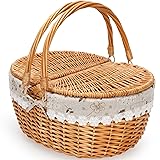 CUTE & AESTHETIC PICNIC BASKETS: The wicker picnic basket has a dual-entry willow lid for easy access to the food and drinks, double folding handles for easy carrying, a removable cotton liner makes it easy to clean. The lace makes it very beautiful and the basket is lightweight for a hassle free picnic experience.