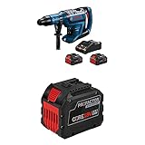 Description This 18V Hitman 1-7/8 In. SDS-max® rotary hammer delivers corded-type performance for heavy-duty concrete drilling and chiseling jobs. The Bosch GBH18V-45CK Hitman Rotary Hammer delivers 9.3 Ft.-Lbs. of impact energy (EPTA). That is unprecedented for a single-battery 18V 1-7/8 In. SDS-max® rotary hammer. It weighs 17.6 Lbs. (tool only, not including battery). This hammer is part of the PROFACTOR System, which pairs BITURBO Brushless Technology with a CORE18V PROFACTOR battery. BITURBO Brushless Technology is a high-performance motor and drive-train system designed to deliver power comparable to high-demand corded tools. It has rotary hammer and hammer-only modes, and Vario-Lock to rotate and lock the chisel. The anti-vibration system features a longer air cushion in the hammer tube, dampeners in the handle and a counter-balance weight in the hammer mechanism. It also has Soft Start and controlled rpm and bpm, making it easier to control drilling and chiseling applications. The hammer features an on-tool user interface for tool performance, feedback, and control. It has connectivity (module sold separately) to link to connected device via Bosch Toolbox App to customize settings and receive detailed feedback.