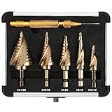 Two-fluted design provides faster, smoother drilling, Provided with small pressure and the sets can cut through wood, plastic and other surfaces thickness under 5mm. Step Cone Drill Bits design for precision drilling different size holes from 4mm up to 32mm in diameter,optimum speed and accuracy.