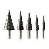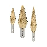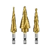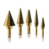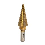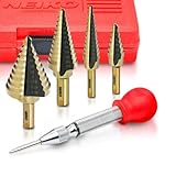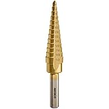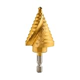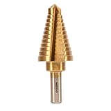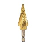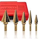 Neiko Tools U.S.A. Titanium Step Drill Bit 1/4" to 1-3/8" in 1/8" Increments, Two-Flute Design for Faster, Smoother Cutting, 3 Flatted 3/8" Shank, Heat Treated HSS with Titanium Nitride Coating, Self-starting - no walking and no center punch required, Perfect for clean holes in thin materials like steel, stainless steel, copper, aluminum or plastic
