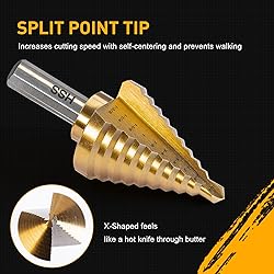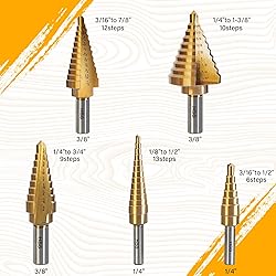 Includes: Our assortment comes with 5 drill bits and a combined 50-step sizes ranging from 1/8" to 1-3/8", allowing for a wide range of drilling requirements and precise hole size selection.