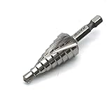 DOUBLE SPIRAL FLUTES: For more efficient swarf clearance; 1/4 inch hex shank with quick release slot to eliminate slipping; Self-starting for clean holes in thin materials; M35 cobalt HSS to cut stainless steel. The step drill bit is made with M35 cobalt. Ideal for a variety of materials from stainless steel, metal, plastic, fiberglass to wood. They also help to enlarge existing holes. M35 HSSCo is a high speed steel alloy made up of 5% cobalt. M35 is similar to M2, but with 5% cobalt added.