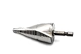 Double spiral flutes for more efficient swarf clearance; 1/4 Inch hex Shank with quick release slot to eliminate slipping; Self-starting for clean holes in thin materials; M35 cobalt HSS to cut stainless steel. The step drill bit is made with M35 cobalt. It is ideal for variety of materials from stainless steel, metal, plastic, fiberglass to wood. They also help to enlarge existing holes. M35 HSSCo is a high speed steel alloy made up of 5% cobalt. M35 is similar to M2, but with 5% cobalt added.