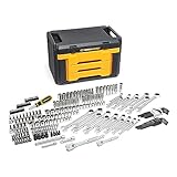 GEARWRENCH started in 1996 with the birth of the Original Ratcheting Wrench. Today the brand has continued to innovate products by adding productivity features to many product platforms. This GEARWRENCH 239-piece Mechanics Tool Set offers 1/4, 3/8 and 1/2-inch drive sizes. Featuring 45-Tooth full polish chrome quick-release ratchets and knurled extension bars for a much needed grip when working on the job. Full polish chrome makes clean-up easy. Sockets and wrenches feature off corner loading technology to reduce fastener rounding. All tools are stored in a 3-drawer storage box with independent sliding drawers. Side flaps are used to lock the drawers in place and has a steel hinged lid and durable handles.