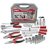 Professional Tools - Professional Results!A practical kit for engine and auto repair plus complimentary set of most reach for hand tools♦ 3/8" Ratchet Drive Handle72 Teeth for maximizing turning space, forward-reverse-lock modes♦ 17 x SAE Sockets:1/4": 1/4"x 2, 3/16" x 2, 5/16", 5/32", 7/32", 9/32", 11/32", 3/8"3/8": 7/16", 1/2", 9/16", 11/16", 3/4", 19/32", 15/32"For working on a range of fasteners♦ 3/8" Drive Sliding T-barFor accurate torque control♦ 3/8" Universal JointFor awkward angles♦ 3/8" to 1/4" AdaptorTo allow use of 1/4" Sockets with 3/8" Drive handle♦ 2 x 3/8" Spark Plug Socket- 16mm, 19mmFor changing engine spark plugs♦3/8" Extension Bar (150mm / 6")For hard to reach places♦ Heavy Duty Long Nose Pliers (150mm / 6")♦ Heavy Duty Combination Pliers (150mm / 6")Cuts, turns and grips wire and metal♦ Adjustable Wrench (150mm / 6")Turns nuts and bolts♦ Voltage Tester and Earthing LeadDetects presence or absence of electrical current♦ 8 x Metric Hex Keys- 1.27, 1.5, 2, 2.5, 3, 4, 5, 5.5, 6mmAssemble furniture, adjust bikes♦ Magnetic Bit Driver Handle♦ 28 x 25mm CR-V Bits:Slotted: 4mm,5mm,1/8,5/32,3/16,1/4"Pozidrive: PZ1,PZ2,PZ3Square: S0, S1*2,S2*2,S3*2Hex (SAE): H1/16, H/64, H1/8, H5/32, H3/16, H1/4Philips: PH1,PH2,PH0Torx: T10, T151/4" Socket Adaptor♦ Robust Portable Storage CaseKeeps tools safe and secure- Fulfilled By Amazon: Free returns for items within 30 days of shipment receipt- Hi-Spec Warranty: All our products meet international standards of testing and are guaranteed against defects in design, material and workmanship
