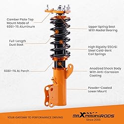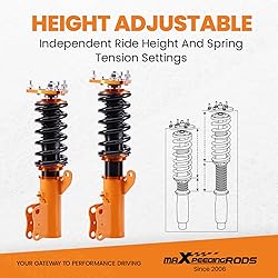 【Lowering Kits】 The height is adjustable for 1-3 inches, allowing you to have a more aggressive stance, allowing you to have a more aggressive stance.This design helps eliminate turning noise and also improves steering feel and response.(NOTE): These Coilovers Strut will ""Lowering your car"" and DOES NOT keep to Original Ride Height.