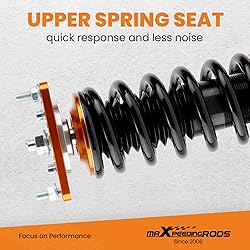 【Spring Rate】 Front: 9kg/mm (504 lbs/in) & Rear: 6kg/mm (336 lbs/in). Hi Tensile performance spring - Under 600,000 times continuously test, the spring distortion is less than 0.04%. Plus, the special surface treatment is to improve the durability and performance.