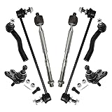 8 Piece Steering & Suspension Kit Kit Includes (2) Front Lower Ball Joints (2) Front Lower Control Arms (2) Front Outer Tie Rods (2) Front Sway Bar Links Fitment Compatible with: 2005-10 Kia Sportage Front Compatible with: 2005-09 Hyundai Tucson Front Product Attributes Quantity: 8 Piece Product Features Application Specific Design: No modifications necessary Anti-Corrosion Coated: Enhanced surface life Pre-greased: No additional maintenance required Kitted for Restored Performance: Improved road-feel and handling Item Details TRQ suspension kits are manufactured using premium raw materials and coatings for extended service life. Each TRQ suspension component is designed to be a direct, maintenance-free replacement to the stock unit. To extend the life of your steering and suspension components, TRQ recommends replacing components in pairs, sets, or kits. All products are fit and road-tested in our Massachusetts R&D facility to ensure we deliver on our promise of Trusted Reliable Quality. Reference Numbers 101-4993 101-6071 101-6072 102-6071 102-6072 2606151 2606152 2606836 2606837 45D10086 45D10087 512-58907R 512-58908L 512-58933R 512-58934L 517602 521-657 521-658 521-663 521-664 545000 545001F000 545001F100 545002 5450020 545002E001 545011F000 545011F100 545012 5450120 545012E001 548301F000 548302 548302E100 568202 568202E900 5CB90255 5CB90268 843-0201 CA1123B CA1124B CA60573 CA60573PR CA60574 CA60574PR CA63083 CA63084 CA828 CA829 CB90045 CB90046 CMS90125 CMS90126 CMS90160 CMS90161 ES800036 ES800056 FA3152 FA3153 FA3911 FA3912 GS90160 GS90161 K500012 K80510 MS90125 MS90126 MS90160 MS90161 MS90501 MS90600 MS90601 MS90841 RK641338 RK641339 RK642112 SUS00356 SUS05926 SUS05927 SUS06770 SUS07927 SUS07928
