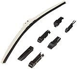 This dual blade wiper is aerodynamic with a built-in designed spoiler to keep even pressure throughout the blade. It has universal adaptors for multiple applications.