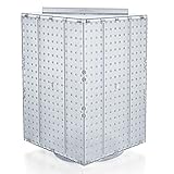 ✅ DIMENSIONS - Azar Displays 4-sided interlocking rotating rack pegboard tower measures 14 inch W x 14 inch D x 20 inch H. Assembled height is 21 inch. The spinner rack stands on a revolving base that is 12-inch diameter.