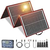 Dokio Powerful and Multipurpose Solar Panel 100W Free New Solar Controller This solar panel packs 100W of power, but it only weighs a mere5.2lbs(2.4kg) High Performance Packs with 100W power by solar energy and works as a unbreakable solar battery charger, it utilizes the powerful Monocrystalline Solar Cell with a high efficiency conversion rate to maximize the use of available sunlight. Beyond that, being made of robust and durable material, it's lightweight and bendable for your quick and easy installation, make it ideal for long treks. Versatile Application Anywhere Unique foldable design, enable to be mounted on an RV, boat, cabin, tent, car, tree or any other irregular surface. Making it perfect for home, nature trips, hiking, camping, fishing, picnic, sailing or other outdoor activities. Specification * Maximum Power: 100W * Optimum Operating Current (Imp):6.10A * Optimum Operating Voltage (Vmp): 18.9V * Short-Circuit Current (Isc):6.35 * Open-Circuit Voltage (Voc): 22.5V * Maximum System Voltage:600V DC (UL) *Foldable Dimension:28x20.5x0.4(in) * Expansion Dimension:40x28x0.2(in) * Net Weight:2.4kg *Package Weight:2.8kg (including wire and controller) Solar Controller Tips: Please keep it in cool and well ventilated place to maintain good heat dissipation. The controller is only suitable for lead acid batteries:OPEN, AGM, GEL, not for nickel hydride, lithium, ions, or other batteries. Ensure your battery has enough voltage for the controller to recognize the battery before first installation. When the battery voltage is too low, the controller will stop output; after the solar panels charging, the battery will return to 12.6 V. It is a natural to output. Package Contents: 1 x Dokio 100W Foldable solar panel 1x Dokio solar controller 1 x User