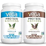 Green feels good. Add extra greens and protein to your daily routine without skipping a beat with Vega Protein and Greens vegan protein powder. Each scoop is stacked with kale, alfalfa, broccoli and spinach, plus 20g of plant-based protein. Start your day with plants by shaking up one serving of Vega Protein and Greens with 1 ½ cups of ice water or blend a scoop into your favorite smoothie recipe for a smooth, subtly sweet taste. Try Vega Protein & Greens in delicious Vanilla, Chocolate, Berry, Salted Caramel, Coconut Almond, Tropical or Plain Unsweetened. Vega Protein and Greens is non-GMO Project Verified, Vegan certified, B Corp Certified, and gluten-free with no added sugar, artificial flavours, or preservatives.