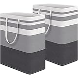 Double reinforced Handles:Two long handles, one on each side of the tall hamper, are reinforced with durable tight stitching to prevent tearing. Handles are long enough to hold for easy carrying with one or two hands, even when hamper is full of laundry or other items