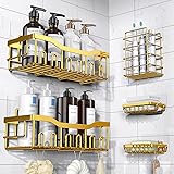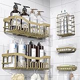 Too many tins and bottles are needed for showers and washing. It is not wise to keep the shampoo on the floor or the soap away from your reach. We've designed the shower caddy set for bathroom storage to facilitate your daily life and make life more comfortable. Everything you need for a shower gets a place to settle down and is always accessible, whether for a body wash, face wash, soap, toothbrush, toothpaste,towel,or shaver. Always Getting Wet, But Never Rust Crafted with premium SUS 304 stainless steel, the bathroom accessories are built to last and look brand-new after years. Show no fear of water and moisture. Let alone the high-temperature baking paint on the surface gives protection to fight against rust, corrosion, and scratches. A hollow design achieves fast and efficient water-draining and wind-drying. The bathroom decor is born for humid using environments like bathrooms. Create Strong Bonds, No More Falling Off Reinforced adhesive adds a contact area between it and the applied surface, creating a solid and unbreakable bond to support the shower caddy basket with a 40-pound maximum load-bearing capacity. Compared to a hook design or suction cups, the adhesive type stands out with wider compatibility and added reliability. Always apply it on a smooth, solid surface and wait 24 hours before use for the best effect. Decent Decoration for Kitchen/Bathroom The shower organizer is crafted delicately with no welded spots exposed to hurt the hands while putting or reaching the items inside. Beyond the function of a shower caddy to house the shower necessities in the bathroom, these baskets will be great for getting some gadgets like oils, seasonings, and sponges well organized for the kitchen. The time spent on classifying and organizing items will be rewarded rather than wasted.