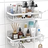 Your Bathroom Is More Spacious Than You Think Let everything you have at your fingertips. The space-saving two shower shelves with two soap dishes can meet all your needs. There are 12 hooks for the shelf and the soap dish, which can hold razors, towels, sponges and soap. Maximize the use of your bathroom space to make it look more spacious and modern. You can flexibly use the bathroom shelf and install it in any scene. They will organize your space in an orderly manner. When you want to remove the adhesive, please use a warm air blower to heat the adhesive surface. Then, it can be removed easily.