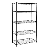 Organize your home or office with our 5-Tier Steel Wire Shelving System from Seville Classics. Shelves features steel wire design for strength and ventilation. Constructed from industrial-strength plated steel with assembled dimensions of 30" W x 14" D x 61.75" H on wheels (60.6" H on leveling feet). Each tier is adjustable at 1-inch height increments along 0.75” diameter metal shelving poles/posts for a personalized storage solution. Includes 2” casters (2-locking) allowing for easy positioning. Leveling feet also included. Weight capacity is 300 lbs. per shelf on leveling feet. Total shelving system weight capacity is 1,500 lbs. on leveling feet and 130 lbs. on wheels. This shelving is perfect in the kitchen, bedroom, closet, office, and garage. Easy assembly with no tools required.