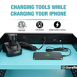 【WITH 5FT POWER STRIP】 The power strip is 5ft, 1875Watts, 14AWG, with 4 AC Outlets, 2 USB Posts(2.1A Share), making this tool organizer more suitable for power tool. Different outlets make it possible to charge your phone while charging your tools.