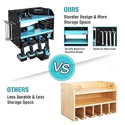 【UNIVERSAL STYLE & PERFECT SIZE】 The simple lines & compact design of this cordless drill storage make it an excellent choice for all design schemes. Different size design can meet your need to place different size tools. The 16.8” width, 10.9” depth, and 14” height is a perfect size for any room and as a great gift for father or son.