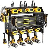 【Multi-Functional Garage Wall Organizer】This power tool holder utilizes free wall space to store tools items, comes with charging station, 4 drill holder slots, 4 hooks and drill bit rack, 2 layers adjustable structure can place the charge tools in order, providing you a neat and efficient workbench!