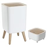 【Quality Material and Easy to clean】 Strong and durable polypropylene materials and sturdy man-made wooden legs. Square design, rounded edges without any sharp parts, long-term use is not easy to deform. This kitchen trash bin exterior is frosted, the interior is smoothly, easy to clean.