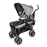 COMFORT & SAFETY: The seating area of this stroller wagon holds 2 children comfortably with 3-point safety harnesses to keep them safe and secure on-the-go